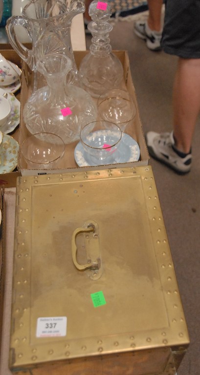Box of cut glass along with brass box.