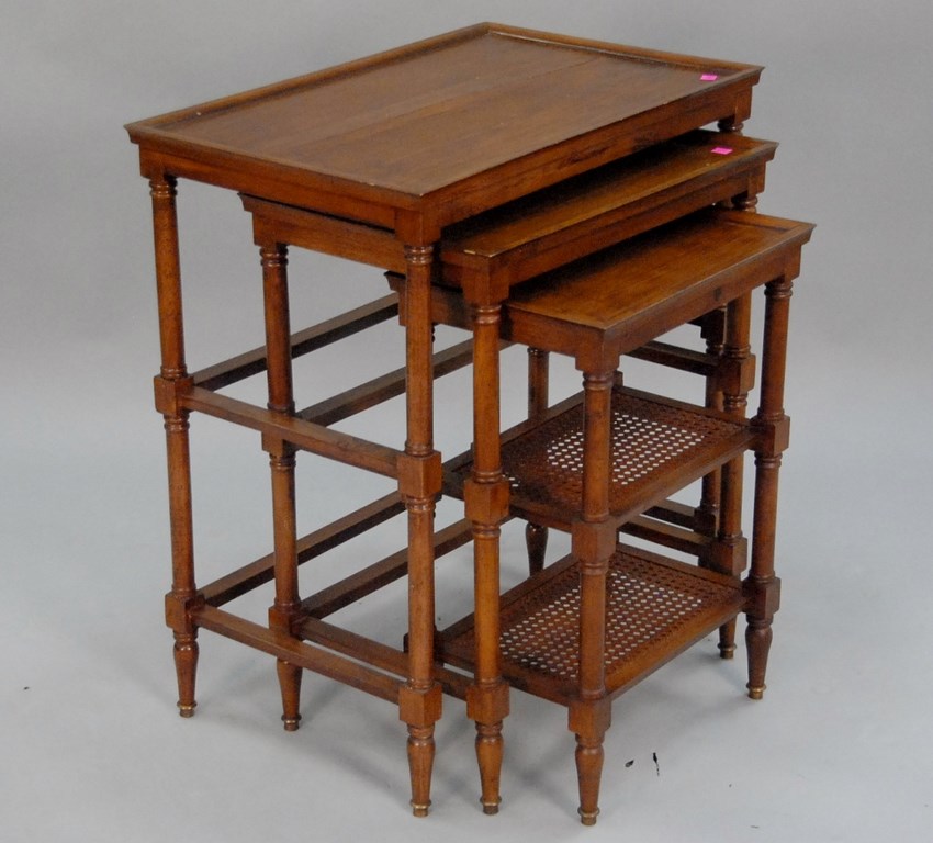 Four piece lot to include nest of tables and inlaid side table.