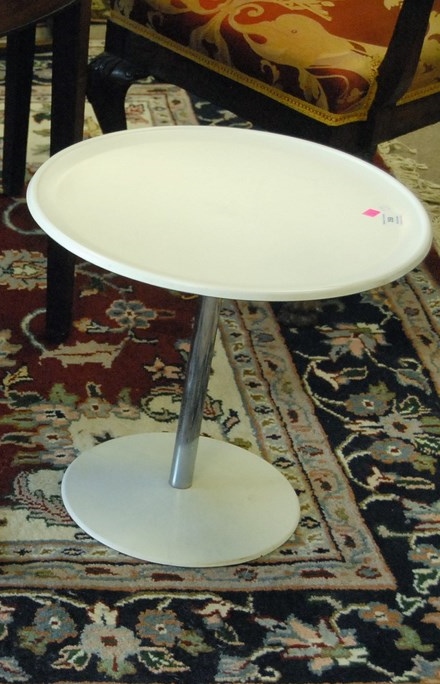 Small white stand by Allen Turuill for Begasse Products Co.: dia. 18in.