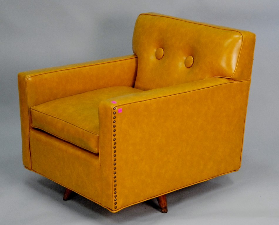 Yellow vinyl upholstered chair.