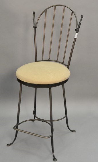 A Persian Karaja runner, the gold ground with geometric medallions in rust, blue, and green, framed within multiple guard borders, the main border in blue with latch-hook motifs.