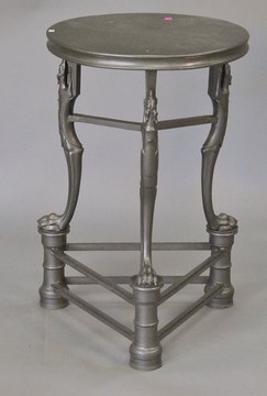 Contemporary iron stand with dogs on legs. ht. 29 1/2 in. dia. 19 in.
