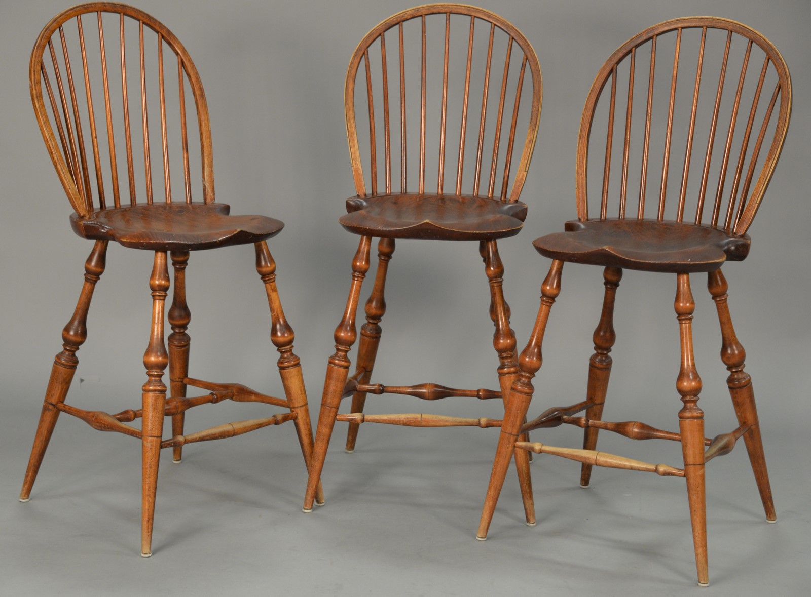 Dimes set of three bar stools. seat ht. 26 in. total ht. 43 in.
