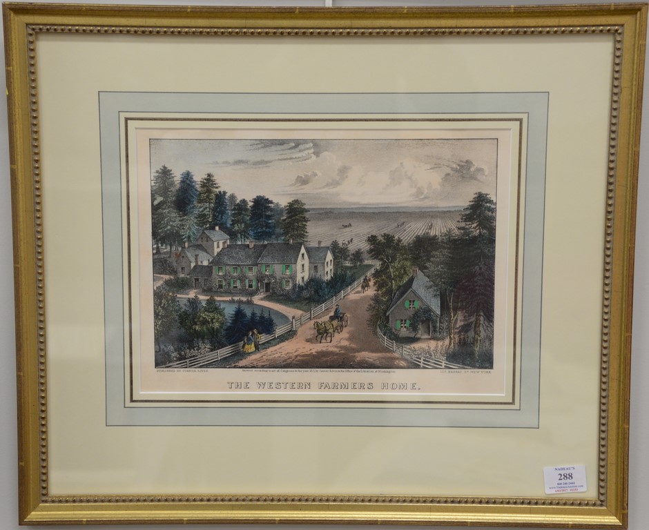 Lot 288: Currier & Ives hand colored lithograph The Western Farmer’s Home,