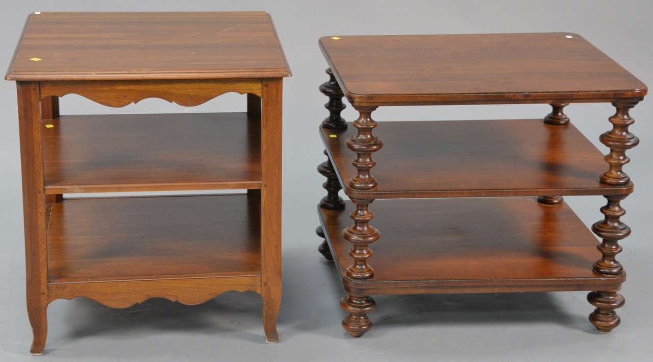 Two Ethan Allen three tier tables. ht. 28in., top: 24 x 24
