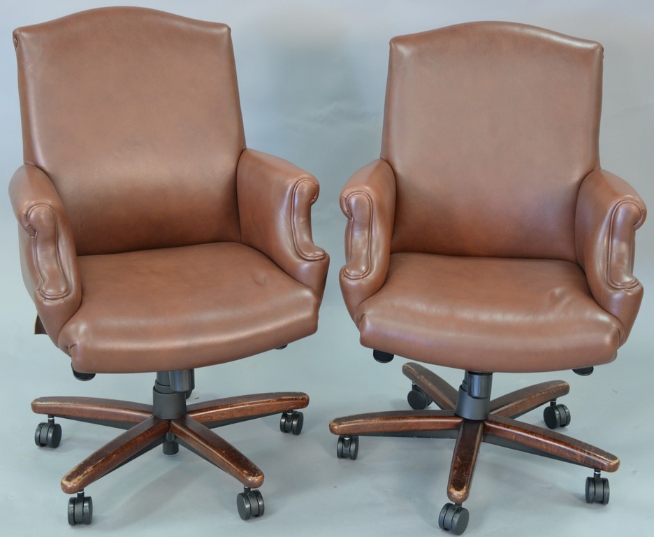 Pair of Cabot Wrenn leather armchairs having swivel bases.