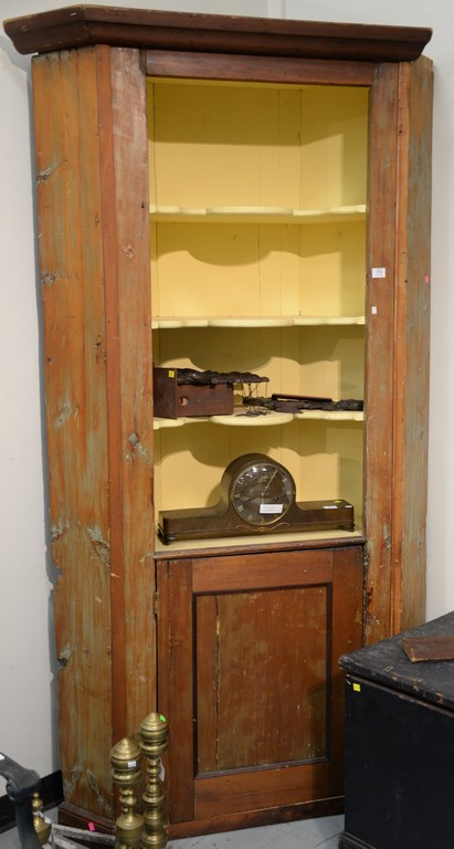 Lot 313: Primitive corner cupboard, American early 19th century. ht. 86 in. wd. 45 in. dp. 20 in.