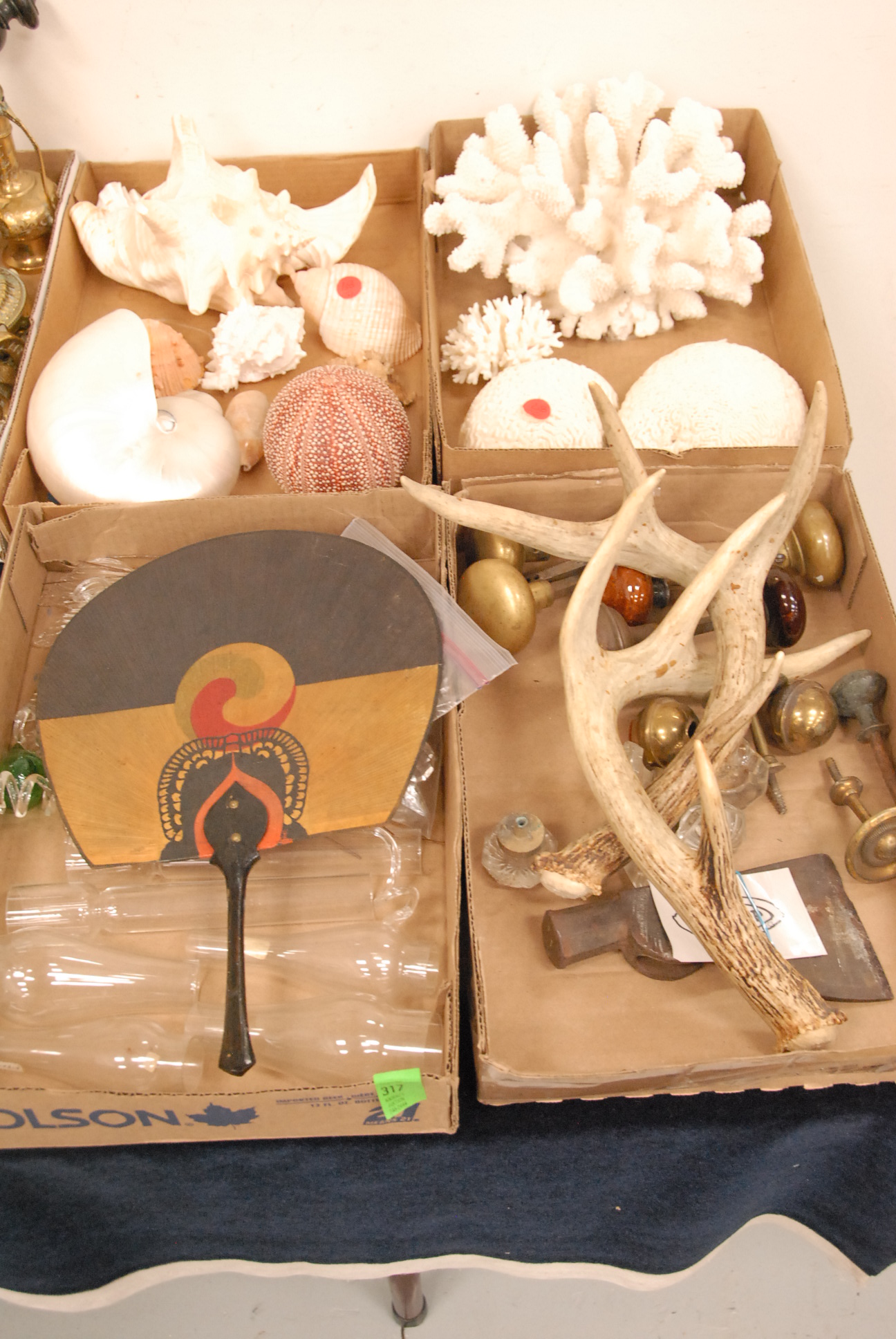 Six box lots of African memorabilia including celluloid doll, three papier-mache dolls, salt and pepper shakers, bobble head, Iron the Young bank, Iron Boy with alligator, books, tea set, etc.