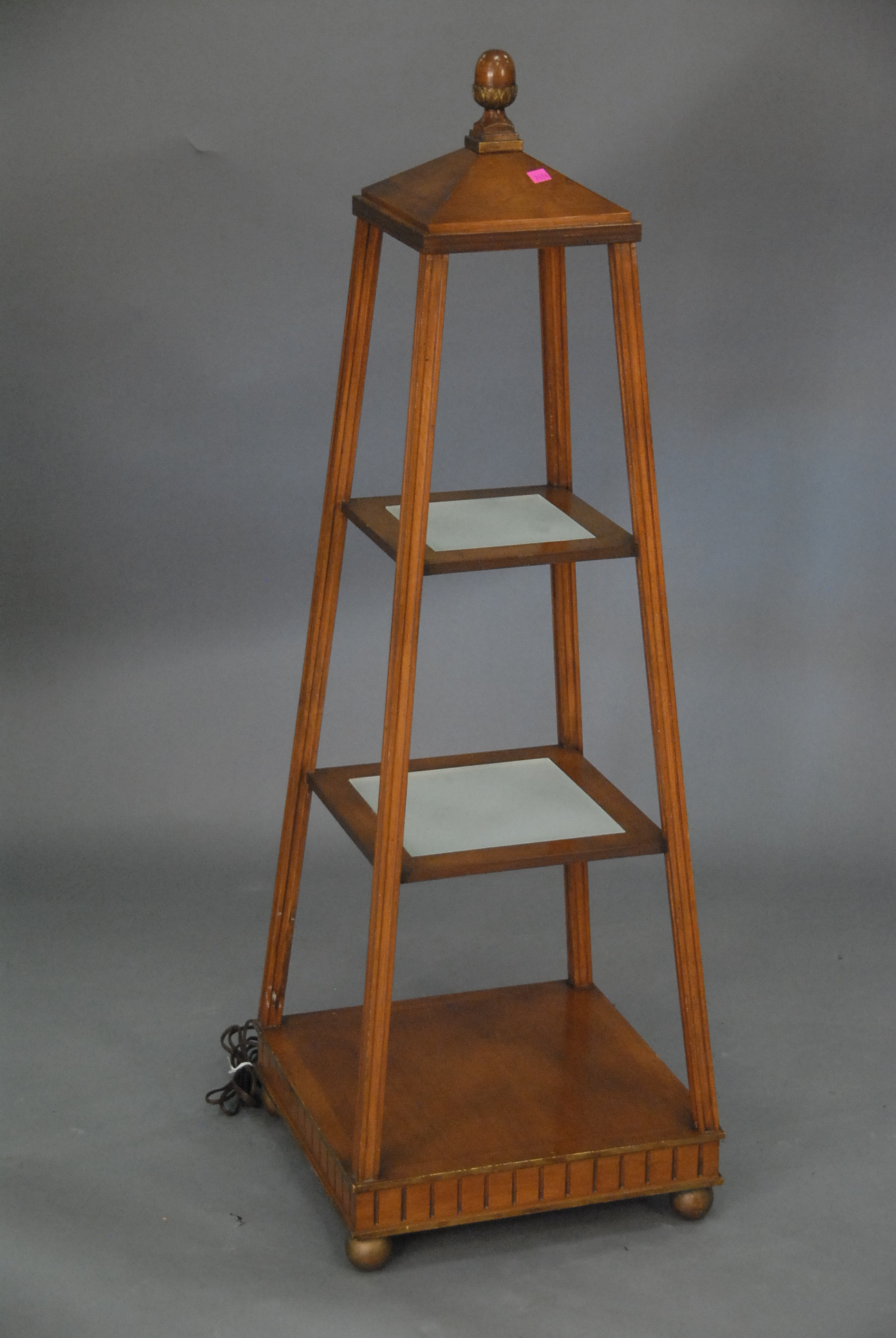 Primitive corner cabinet having molded front, open top with shaped shelves, and two doors in base, late 18th century. ht. 74 1/2 in. wd. 52 in. dp. 26 in.