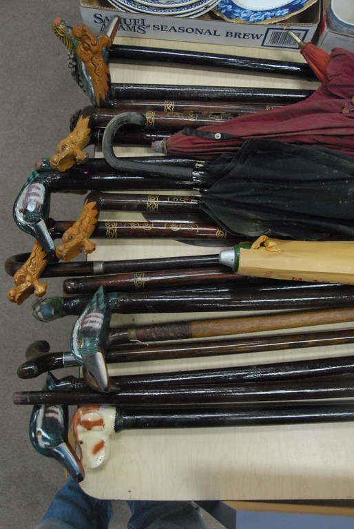 Group lot side chair, outdoor chairs, outdoor chairs, walker, two floor lamps, small bookcase, suitcase, trash can, car seat, and cherry, and Hitchcock bench.