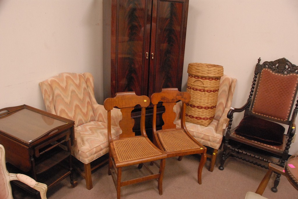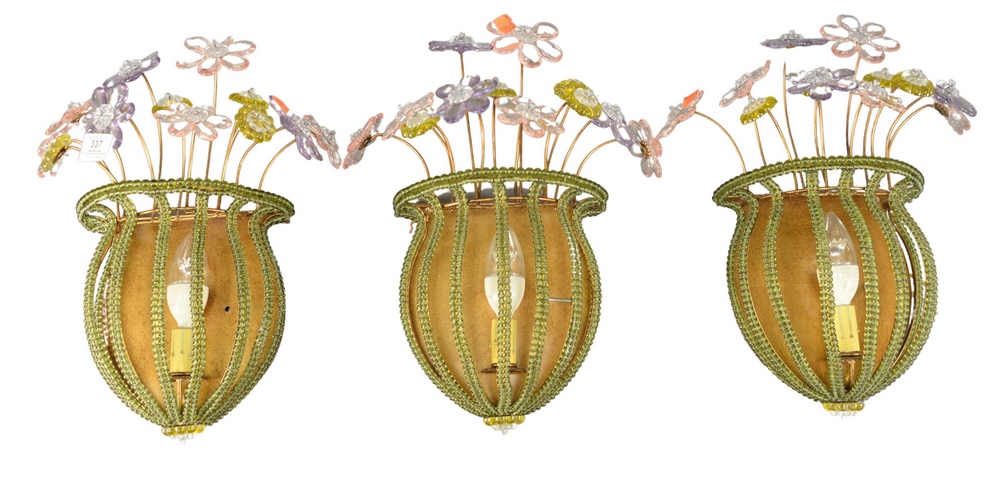 Three piece lot to include a pair of Chinese Export porcelain famille rose foo lion form spill vases, each stylized lion bearing their teeth and seated on rectangular base, in tones of rose, turquoise, chartreuse, iron-red, and black, early 20th century. ht. 10in. lg. 3in. along with a Chinese Export porcelain famille rose elephant form jos stick holder modeled as a stylized elephant, his mid-back issuing a shaped candlestick, in tones of gray, pink, chartreuse, turquoise, and yellow, early 20th century. ht. 9in. lg. 8 3/4in.