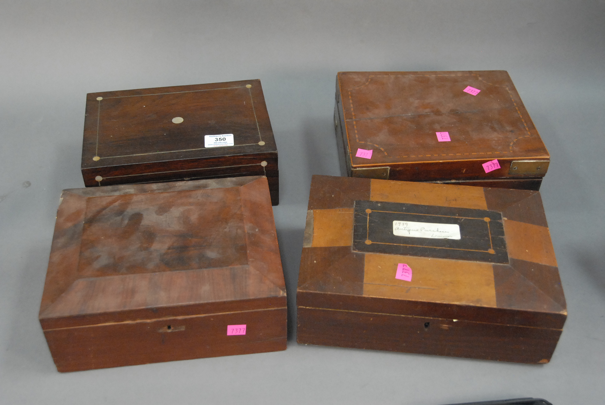 Lot 350: Group of four lift top boxes, one is mahogany inlaid sewing box.