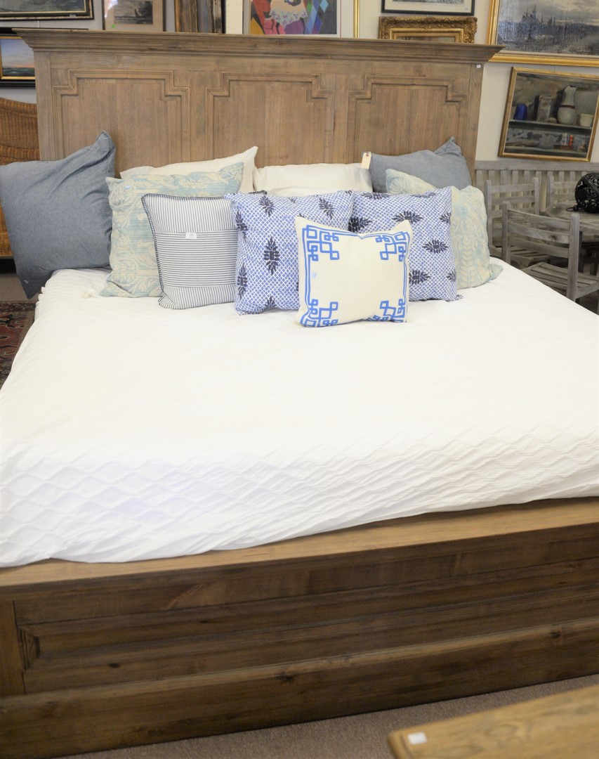 Lot 350: Restoration Hardware Two Piece Set to include one king size bed, headboard, foot board, and side rails along with a nightstand