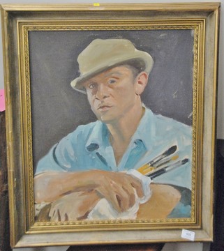 Lot 365: Margaret Fitzhugh Browne 1884-1972 PORTRAIT OF A MAN WITH PAINT BRUSHES oil on canvas written on back, 20 x 24.