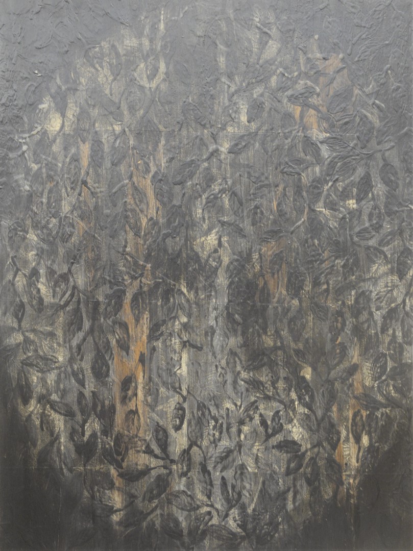 Lot 373: Sabina Ott (American, 1955-2018), Disappearance and Return, 1989, oil and encaustic on board, signed on the reverse, 44″ x 36″.