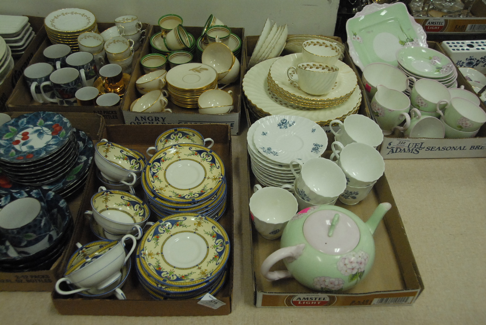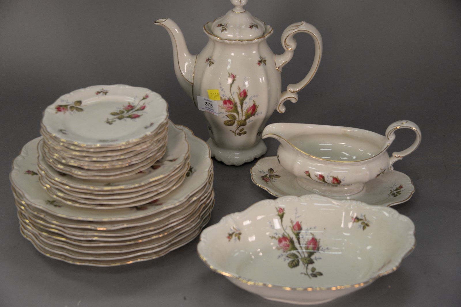 consisting of carved high back double bed, tall chest, mirror, and commode