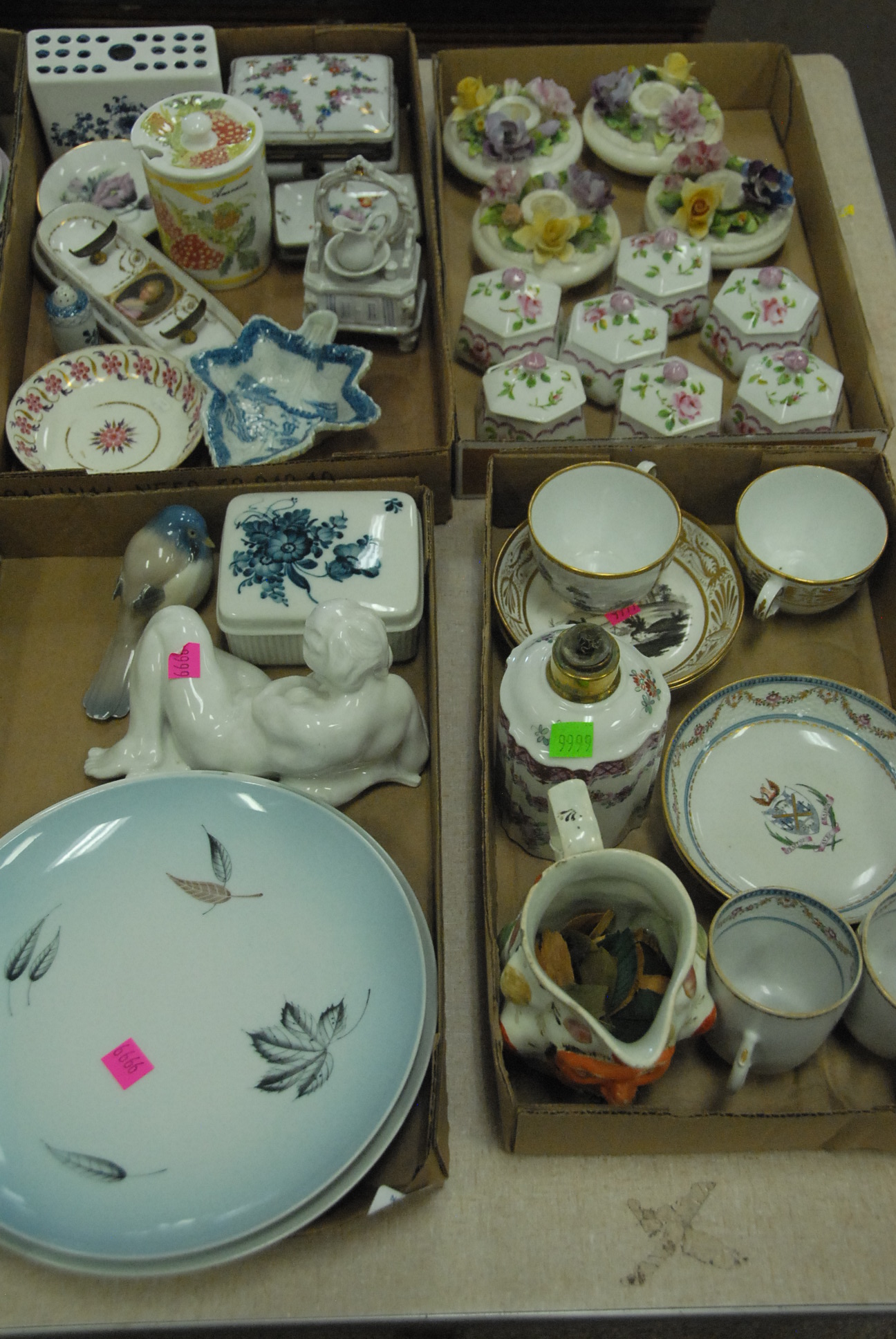 Four box lots to include porcelain boxes, cups and saucers, Royal Worcester, Limoges, etc.