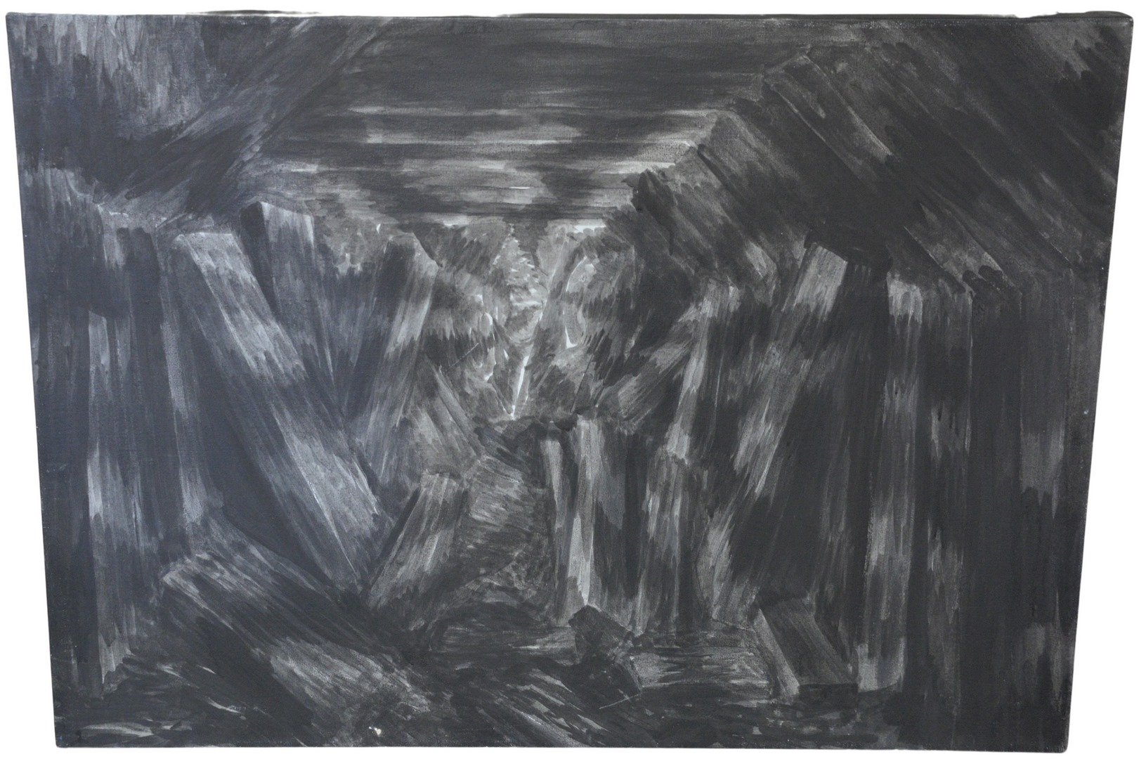 Bill Komoski (American, b. 1954), untitled, 1983, acrylic on canvas, unsigned, 29 1/2″ x 39″, with a Barbara Gladstone Gallery label adhered to the reverse.