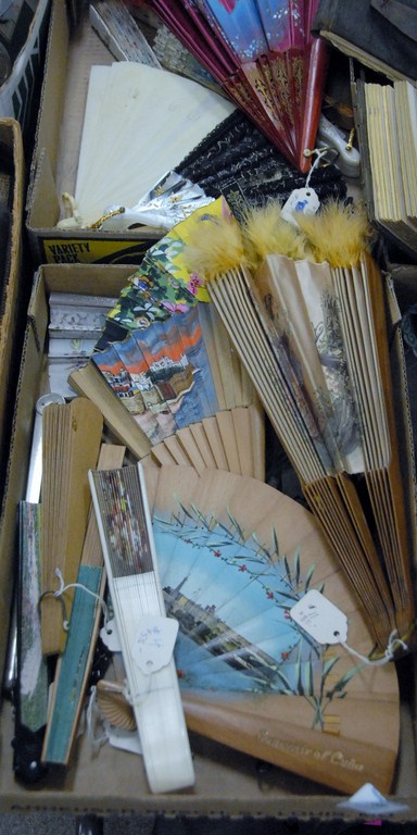 Lot 389: Two box lots of fans including souvenir fans.