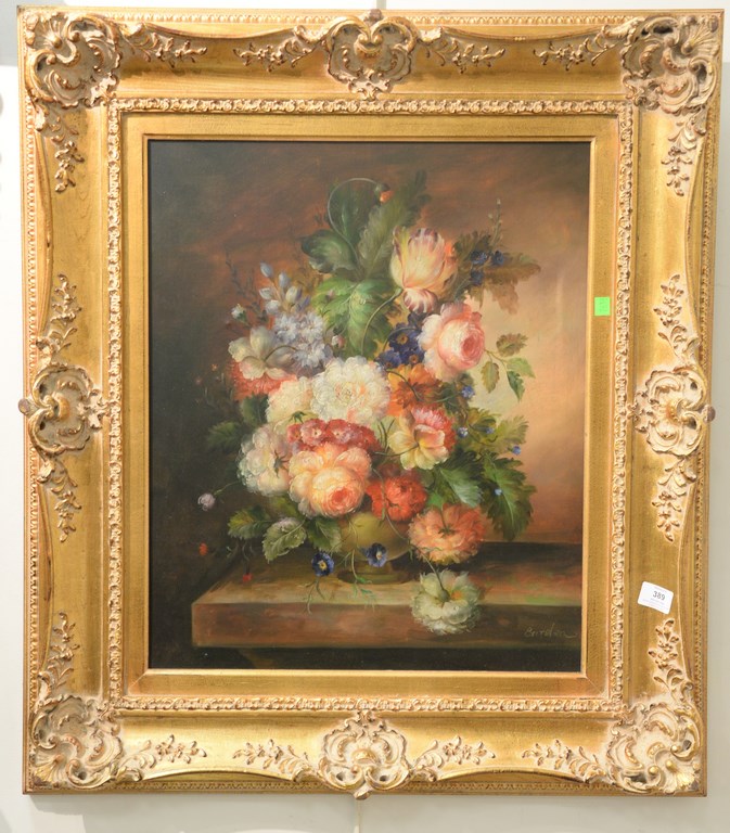 Lot 389: Contemporary still life of flowers in a vase, 24 x 20.