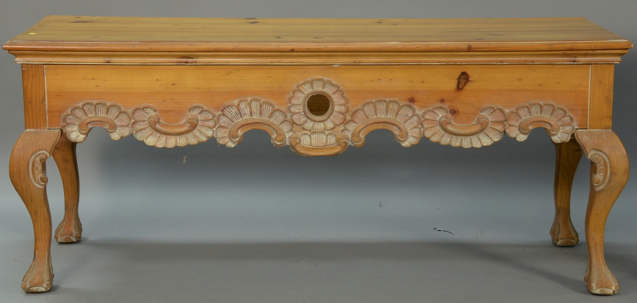 Lot 389: Pine server with carved skirt. ht. 31in., wd. 73in., dp. 23in.