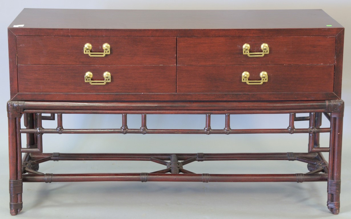 Ficks Reed mahogany and bamboo server. ht. 32in., wd. 54in., dp. 20in.