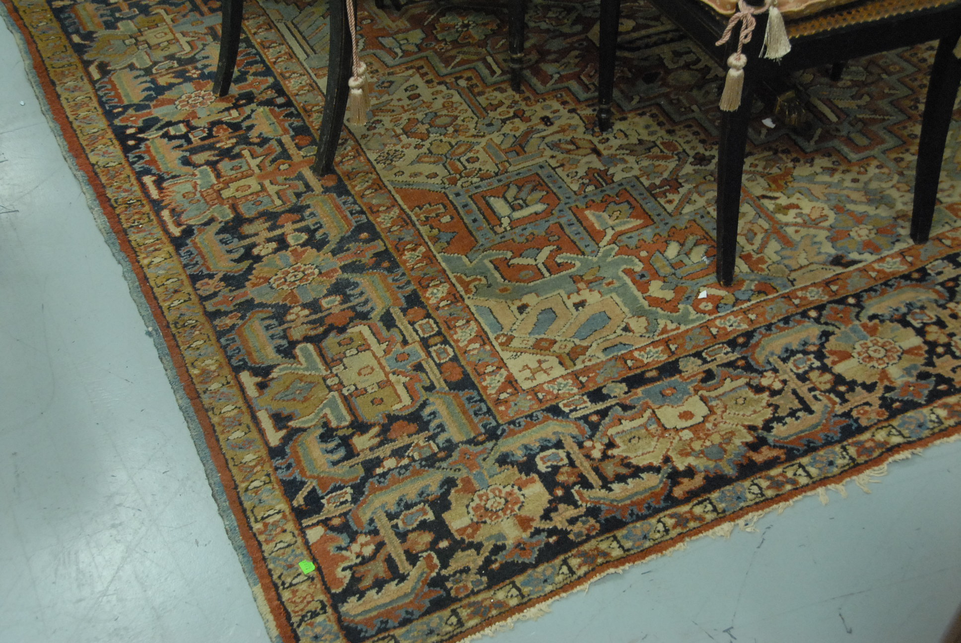 Lot 419A: Heriz Oriental carpet some corner moth damage. 8’9 x 11’4 Provenance: From prominent Woodbridge, Connecticut family collection…..