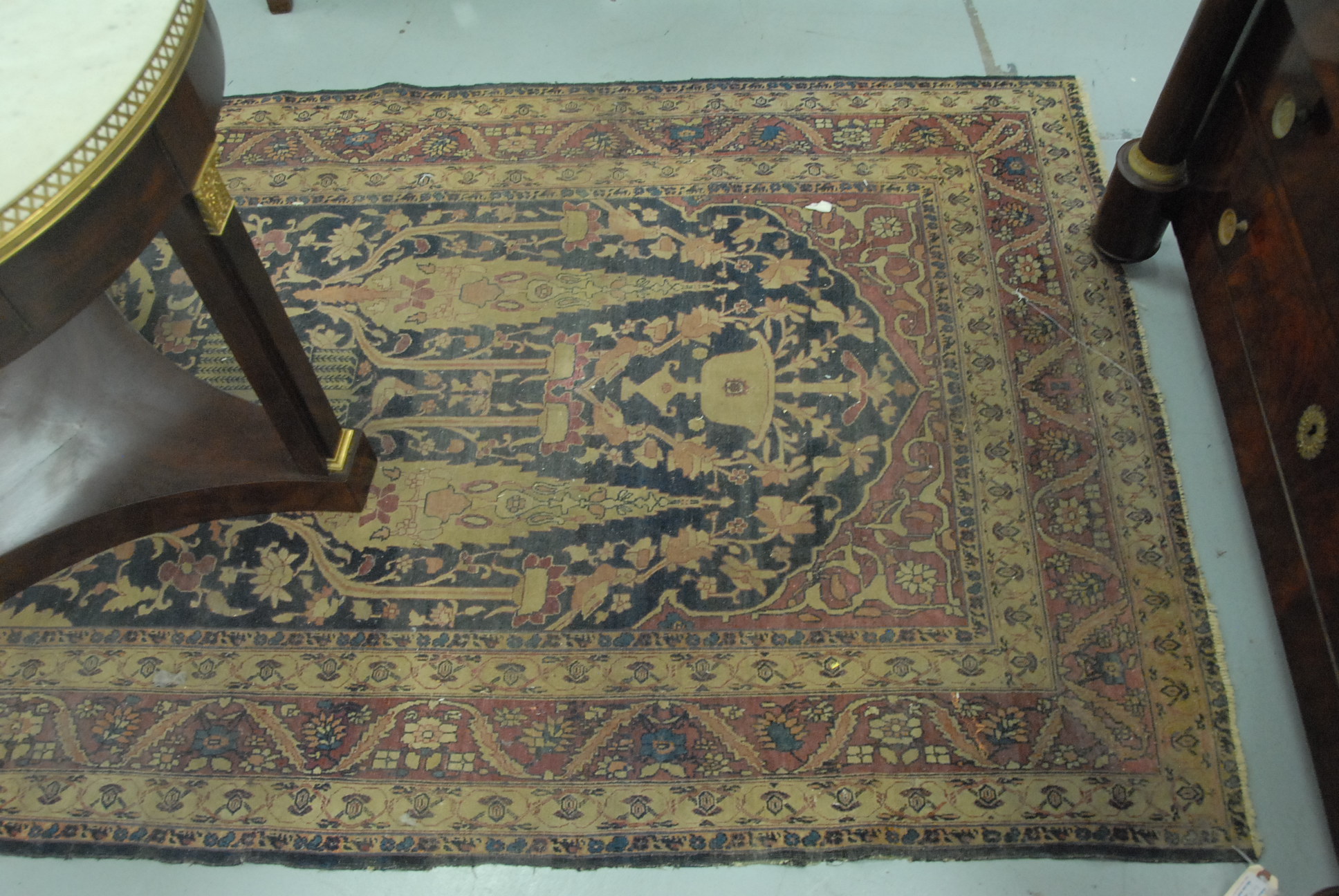 Lot 419B: Farahan Oriental rug worn. 4’4 x 6’8 Provenance: From prominent Woodbridge, Connecticut family collection.
