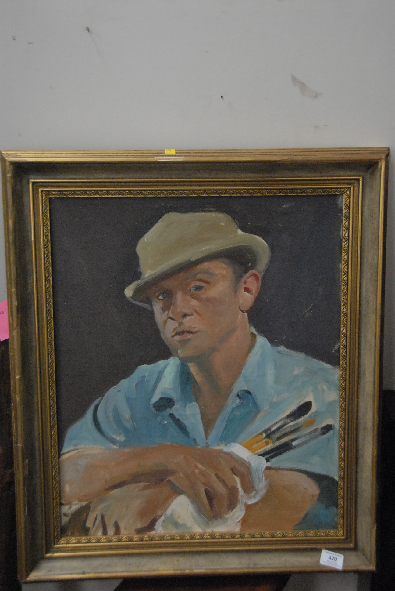 Lot 420: Margaret Fitzhugh Browne 1884-1972 PORTRAIT OF A MAN WITH PAINT BRUSHES oil on canvas written on back, 20 x 24.