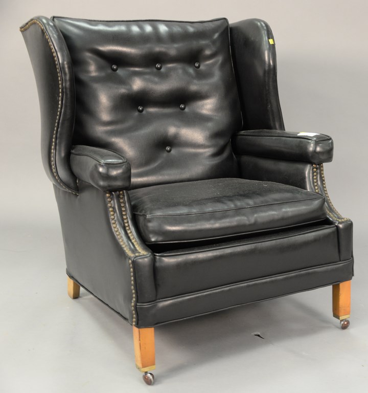 Lot 420: Hudson Custom Furniture black leather armchair.