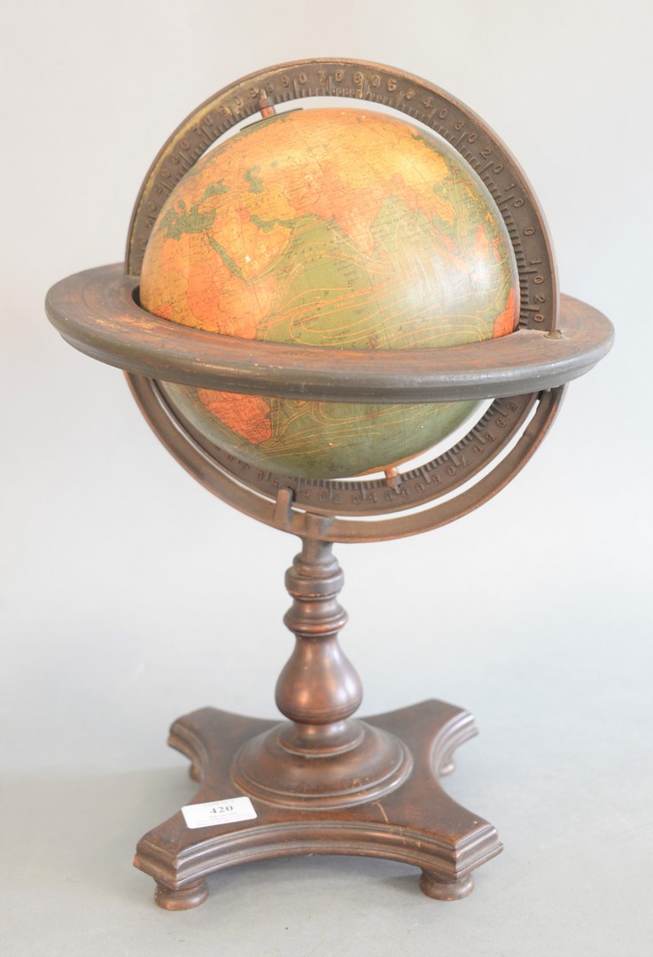 Lot 420: Kittinger Company Small Terrestrial 8 Inch Globe, height 17 1/2 inches