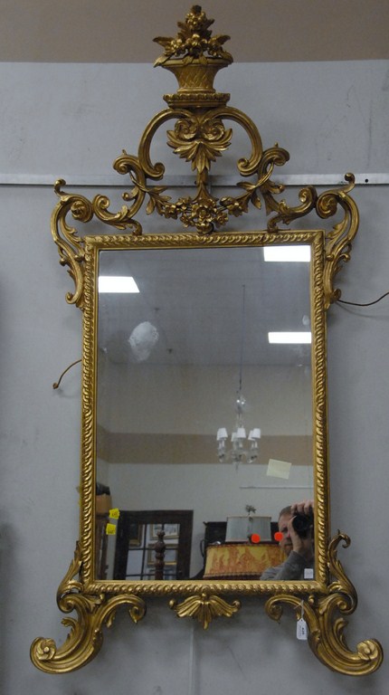 Lot 426: Chippendale gilt mirror with basket of flowers top on openwork scrolls, rectangular mirror, and scrolled legs, probably 18th century…