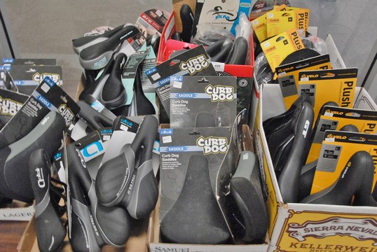 7 boxes of bike seats, approx. 42, approx. retail value 850.00