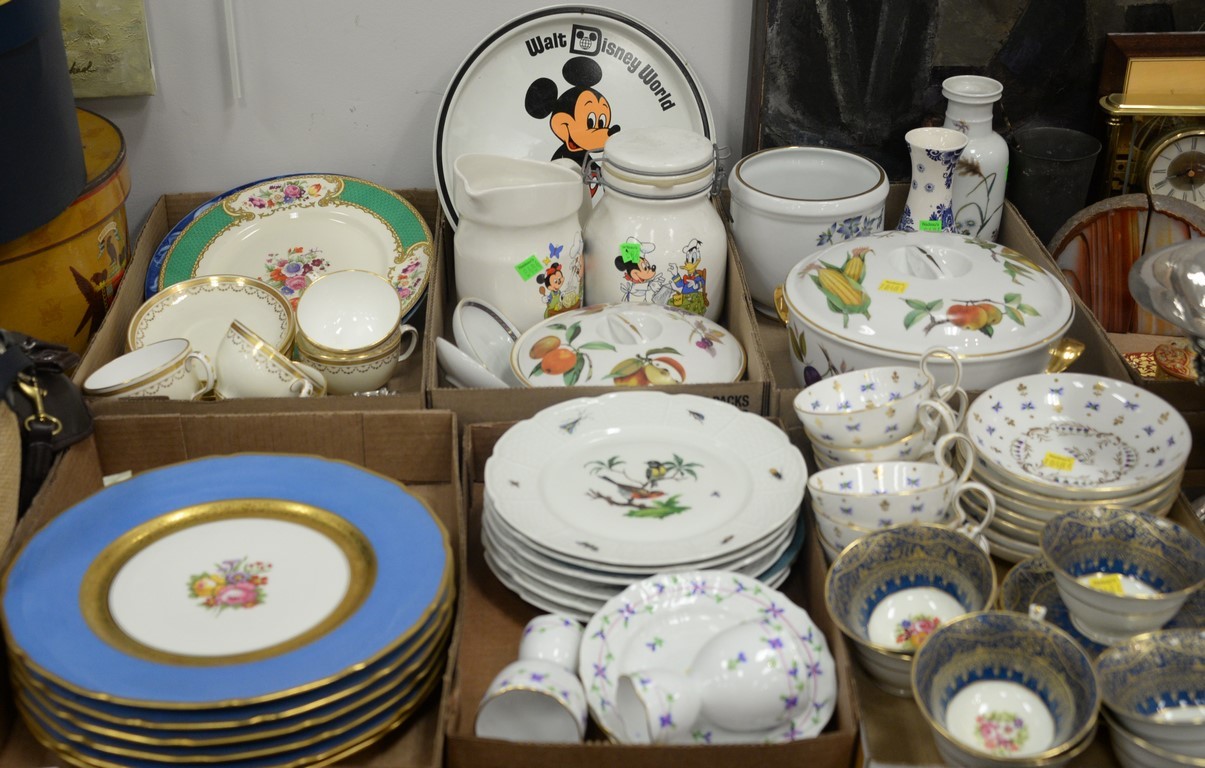 Lot 426: Six box lots of china plates, cups, saucers, six Limoges plates, two Royal Worcester dishes, Raynaud Limoges, etc.