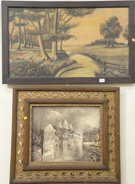 George Inness American 1825-1894 THE RAINBOW oil on artist’s board initialed lower left G.I. Provenance: Barridoff Galleries, South Portland, Maine, August 3, 2007, no 232 to Private Collection, Savannah, Georgia. 9 1/4 x 13 1/8 Painting comes with letter from Michael Quick, the writer of the catalgue raisonne of the works of George Inness. In this letter, he comments that The Rainbow presents a dramatic scene of a storm deep in the mountain wilderness. Beyond the grassy immediate foreground, light strikes rocks in the center and low trees on the left. Farther back on the left, tall trees rise on a slope. In the middle ground on the right, light strikes the bank of a stream and the bushes near it. Behind them rise tall trees in front of a steeply rising forested slope. Flowing out of the center distance, a shallow brook meanders through the middle distance and passes over rapids, before veering toward the right and the lower right corner. Over the brook and between the facing slopes at either side can be seen a distant mountain, forested on its lower slopes, its top partially hidden in cloud. In the heavily clouded sky, a storm is clearing off toward the right, leaving the partial arc of a rainbow in the upper right. he goes on to say that Having carefully studied The Rainbow over a period of time, it is my definite opinion that The Rainbow is an authentic painting by George Inness 1825-1894. I intend to publish The Rainbow in the supplement to my catalogue raisonne of the works of George Inness.