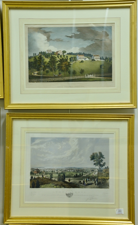 Lot 464: Four framed colored lithographs including Miss E. Butler, Moores lithography Newton Theological Institution Boston & Bunker Hill …