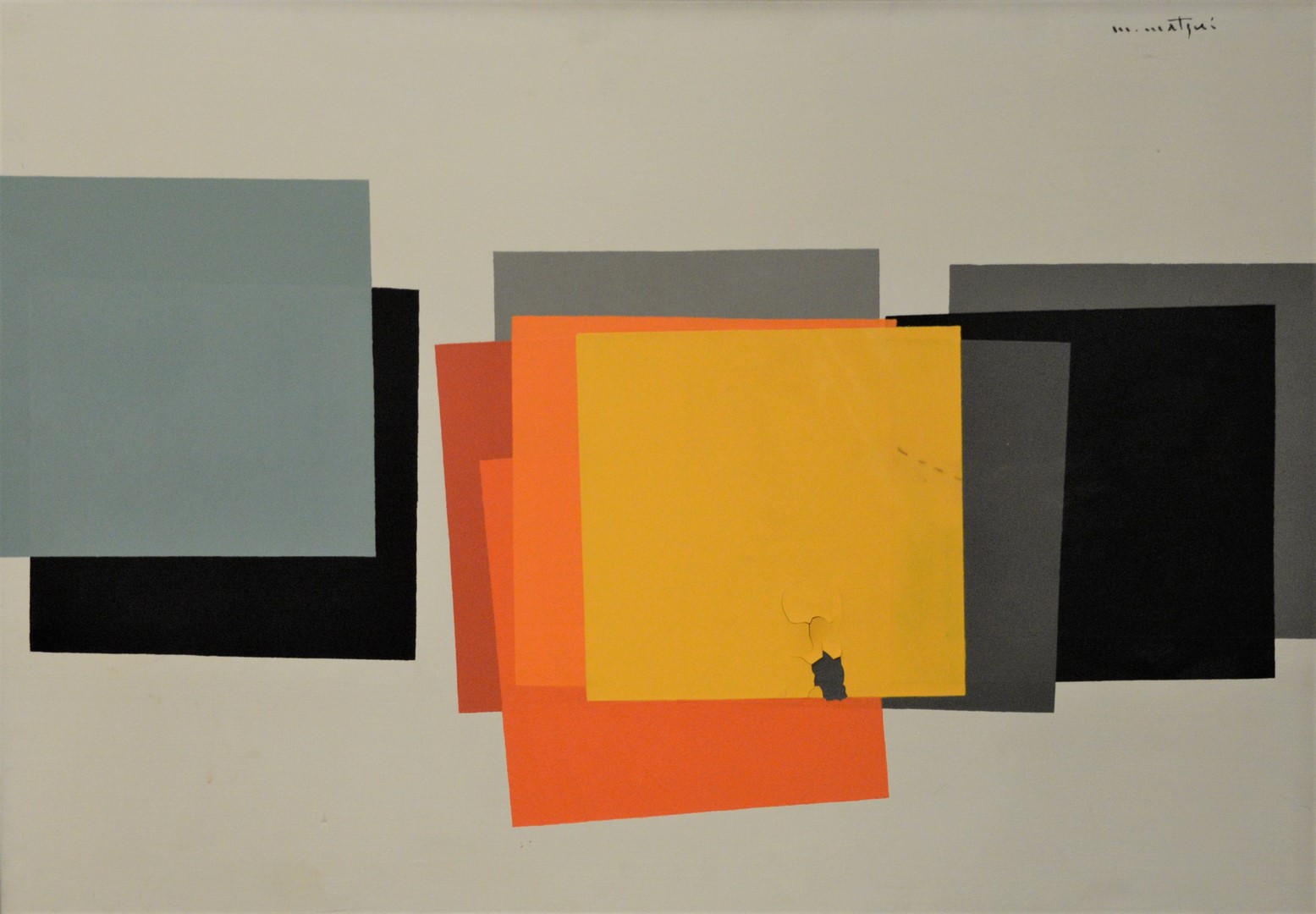 Masaharu Matsui (20th century), Order of the Orient No. 2, acrylic screened on canvas, signed upper right “M. Matsui”, 26″ x 36″, (as is with paint loss and flaking).