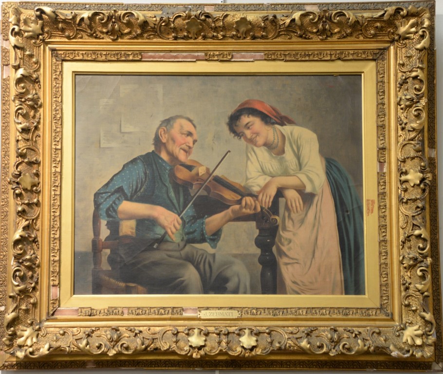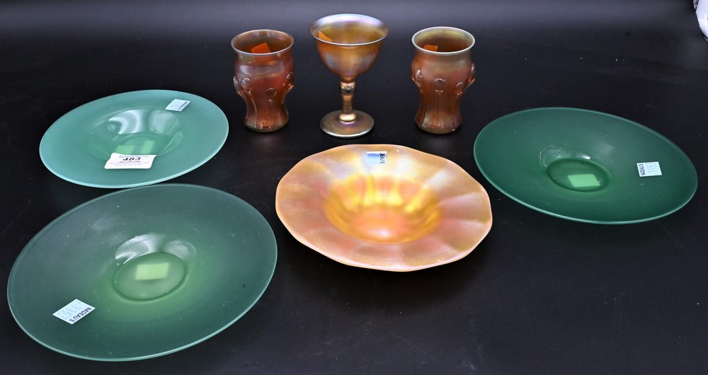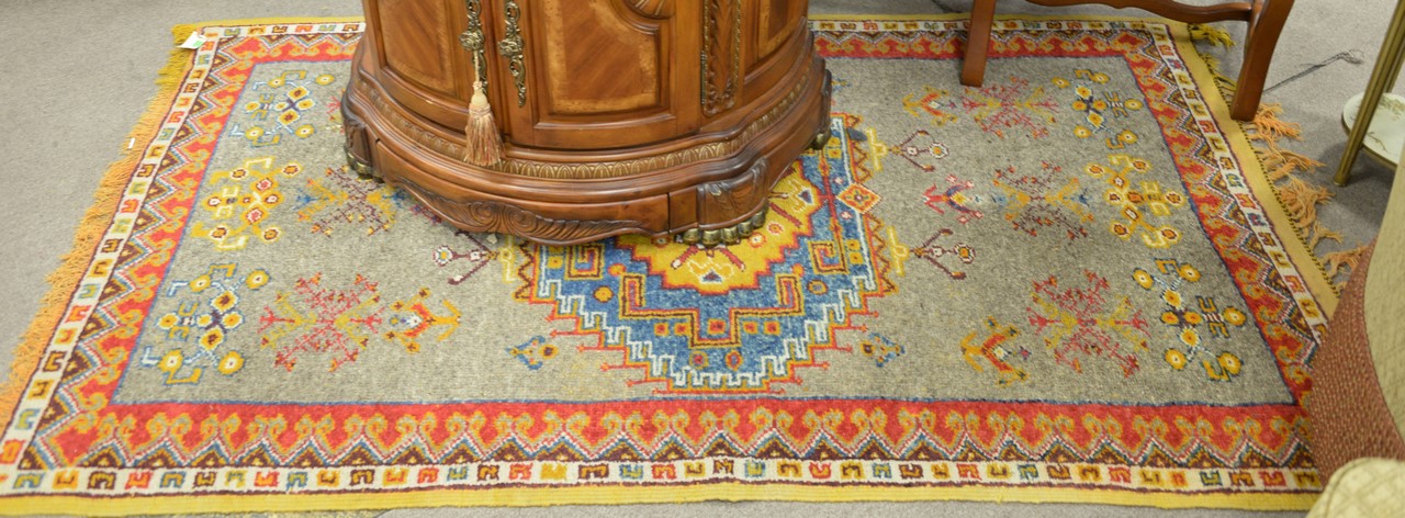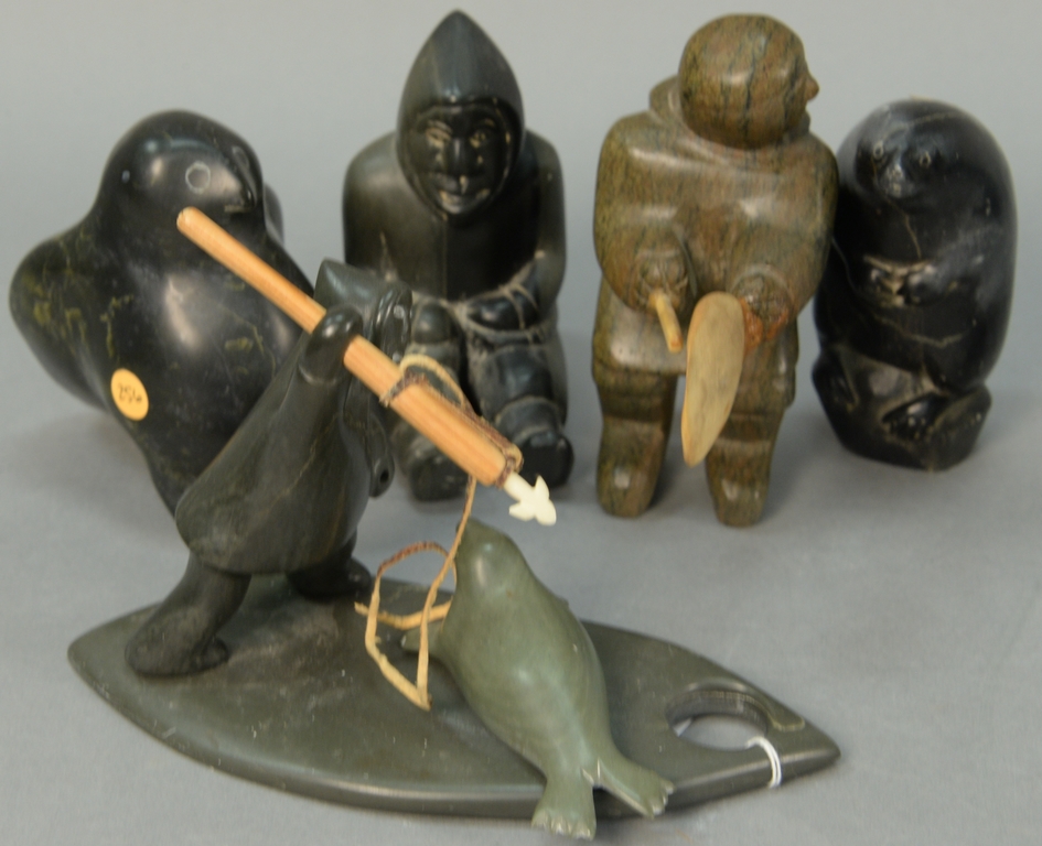Five Piece Lot, to include Thomas McNickle (b. 1944), Barn with Two Corn Cribs, 2022, watercolor, signed lower right, Jerald Melberg Gallery label on back, 14 1/4″ x 21 1/4″; two framed paintings, to include Jim Gunning, The Washington House, Sellersville, PA”, 2002, oil on canvas; Martin Rolland, abstract cityscape, oil on canvas, 23 1/2″ x 35″ and 20 1/2″ x 17 1/4″, along with a Deloss Webber stone and fiber sculpture, having decorative dragonflies throughout, height 54 inches; along with a 3′ x 4′ 7″ Native American style throw rug.