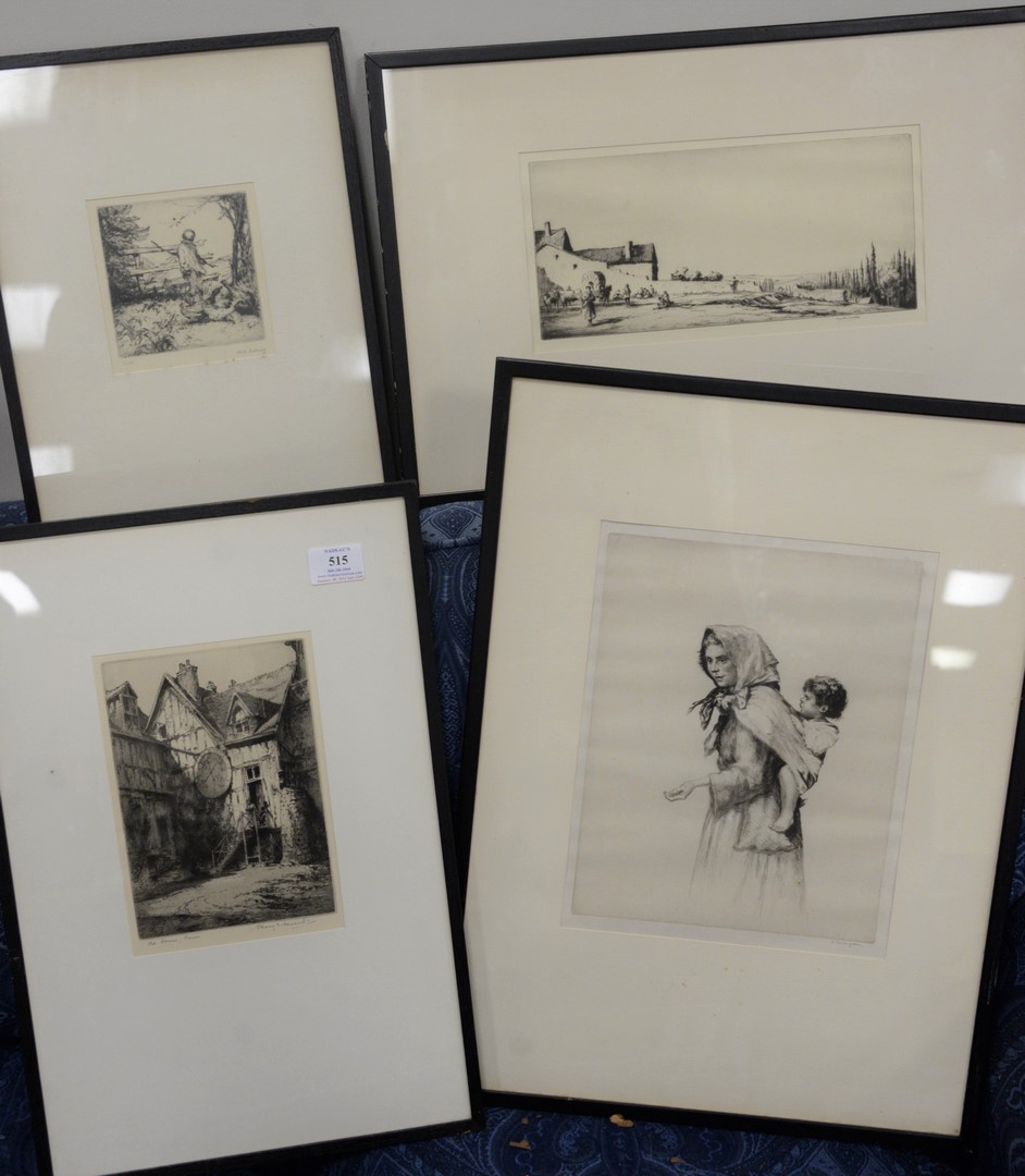 Eugene Bejot, etching, Tersoul Church, Kirk & Company label on the reverse