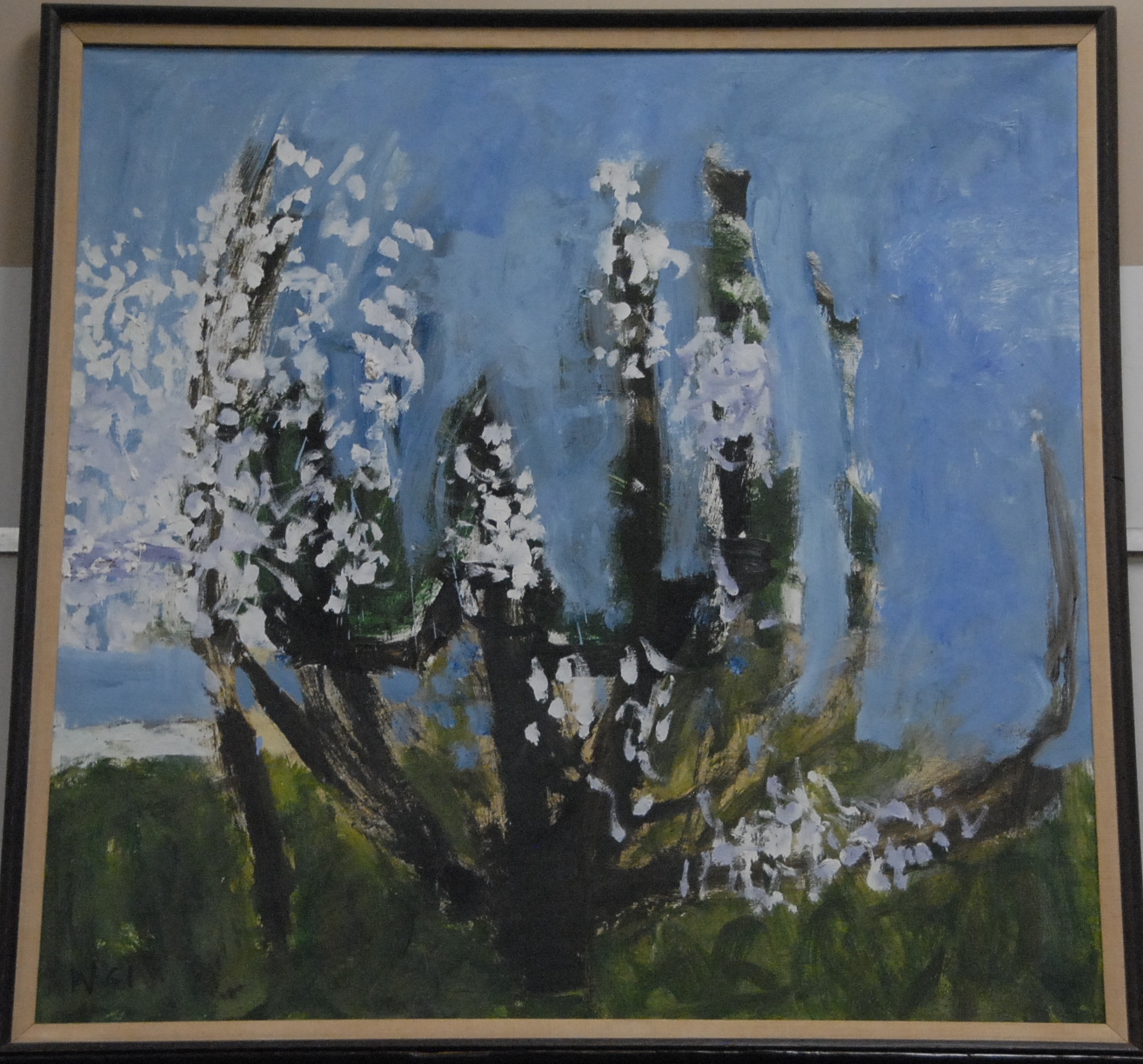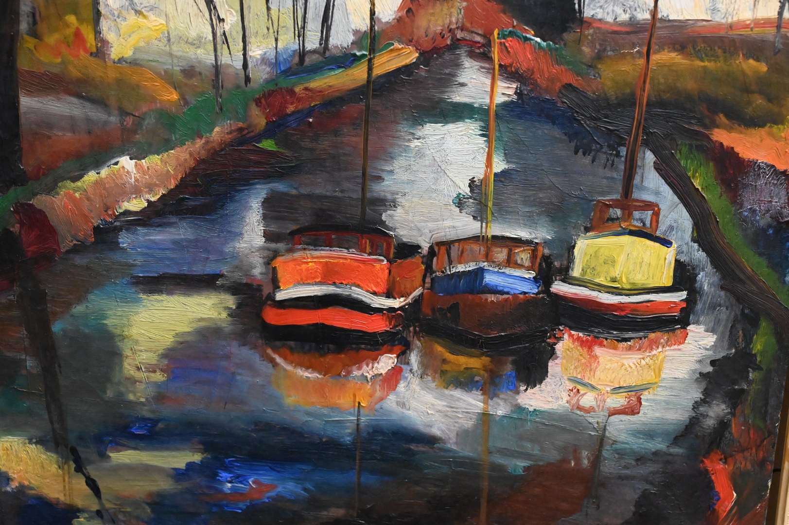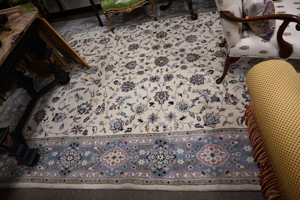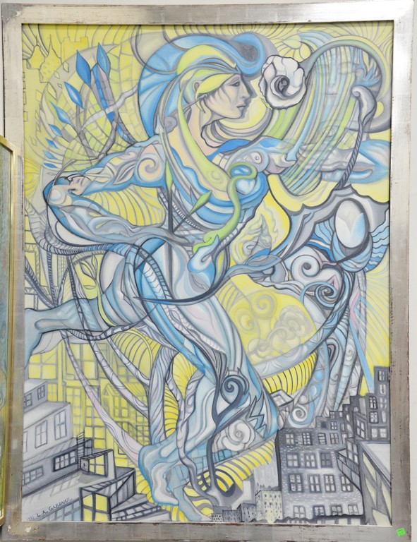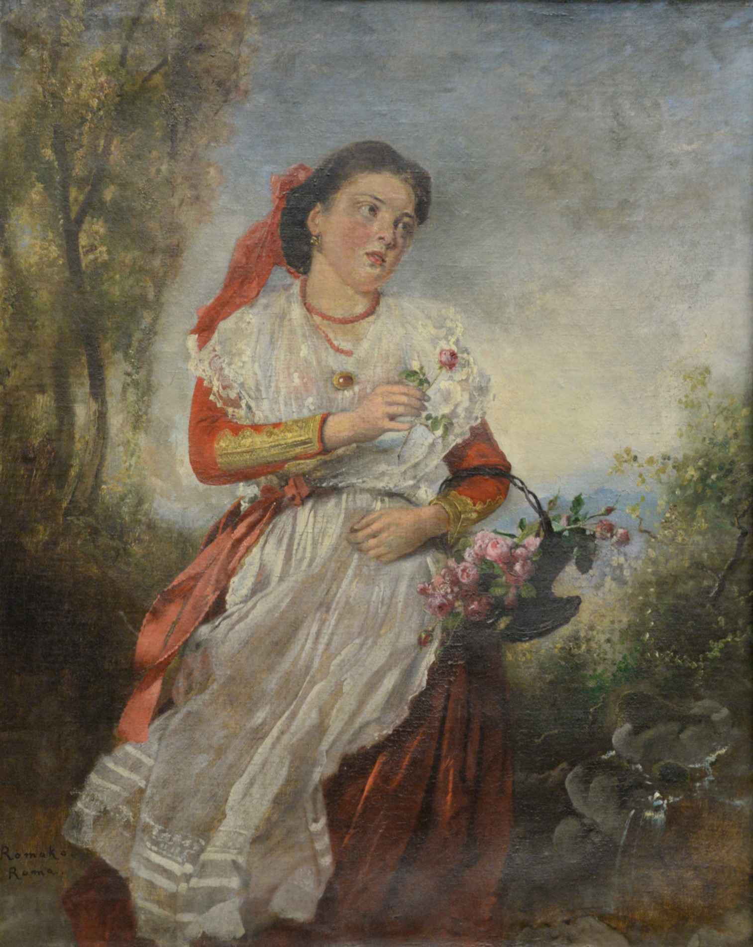 Chinoiserie Decorated Kneehole Desk, having blocked front top and front, top with genre scene of Chinese meeting with head of family, workers, and horseman, ends similar, probably 19th century, height 33 inches, top 25 x 47 inches, (some paint chips).