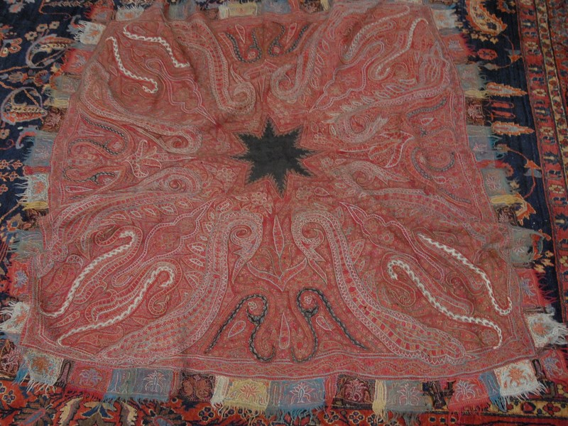 Kirman Oriental carpet with rose background, circa 1950. 9′ x 12′ Provenance: Property from a Private Collection Sold for the Benefit of the Virginia Historical Society.