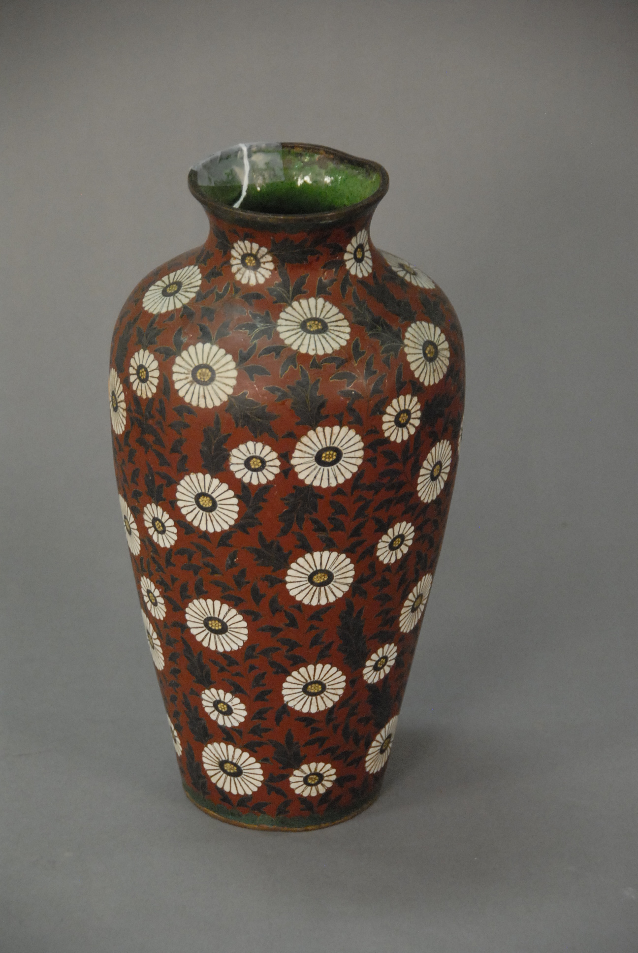 to include large stoneware bowl, two porcelain arts and craft vases, bronze vase lamp, and art glass bell vase, signed illegibly