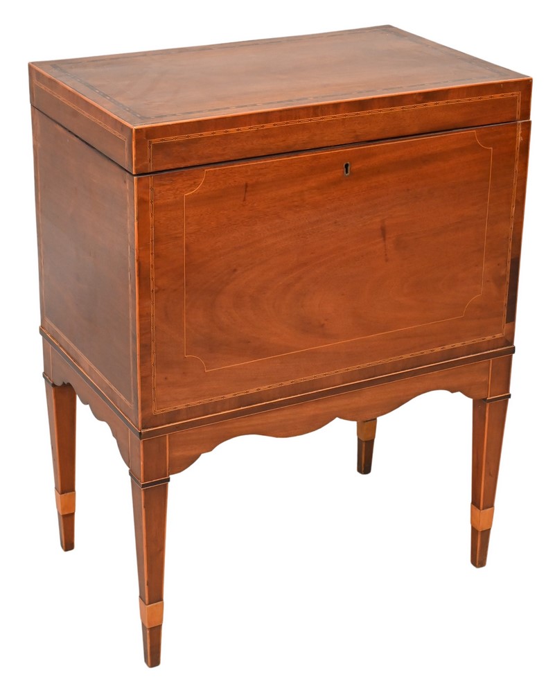 Federal Mahogany Cellarette, having inlaid liftop cabinet on square tapered legs, probably late 19th century, mahogany, mahogany veneer, light and dark wood inlays, eastern white pine, spruce, height 28 inches, width 21 3/8 inches, depth 13 inches, Mabel Brady Garvan Collection. Provenance: Francis P. Garvin (1875 – 1937), New York; gift to Yale University Art Gallery, New Haven, Connecticut, 1930.