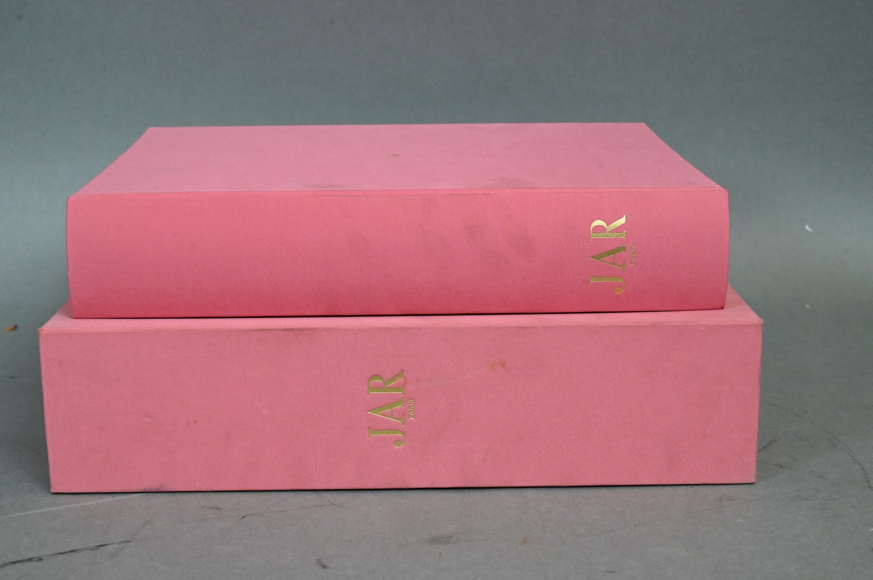 rectangular tapering form with fluted sides and pink guilloché enamel panels decorated with delicate red rose garlands and gilt neoclassical swags, fitted with a foliate-cast collar and fluted handle terminating in an integral seal engraved with interlaced monogram initials, the interior with matching 18K gold, struck with French hallmarks and eagle hand mark, marked Boucheron Paris on cap, retains its original silk-lined fitted case signed Boucheron, 26 Place Vendôme, Paris; London, New Bond Street; New York, Fifth Avenue; St. Petersburg, 20th century