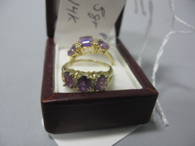 14K Gold Ladies Cocktail Ring, having amethyst center stone flanked by pearls, size 6 1/4, marked 14K, 11.2 grams.