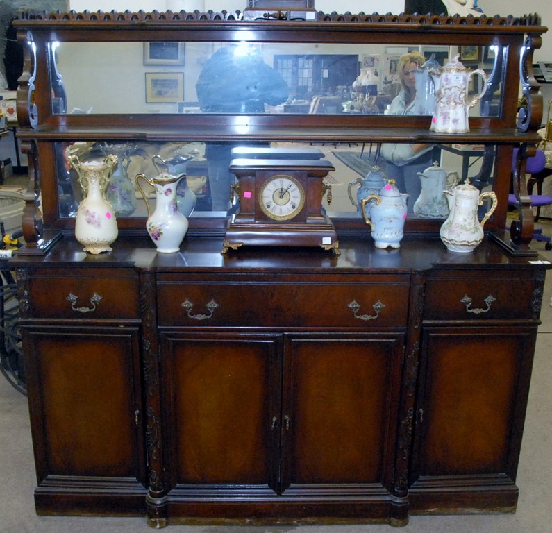 Lot 56: Mahogany credenza with butler’s desk and mirrored gallery back.