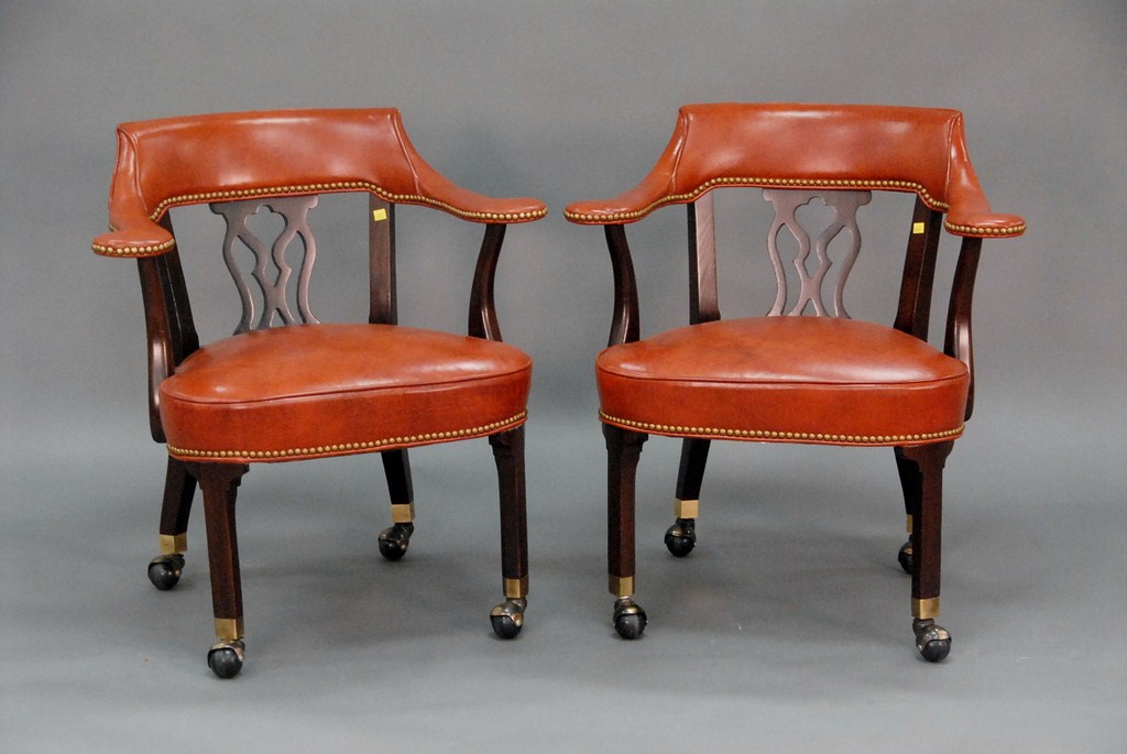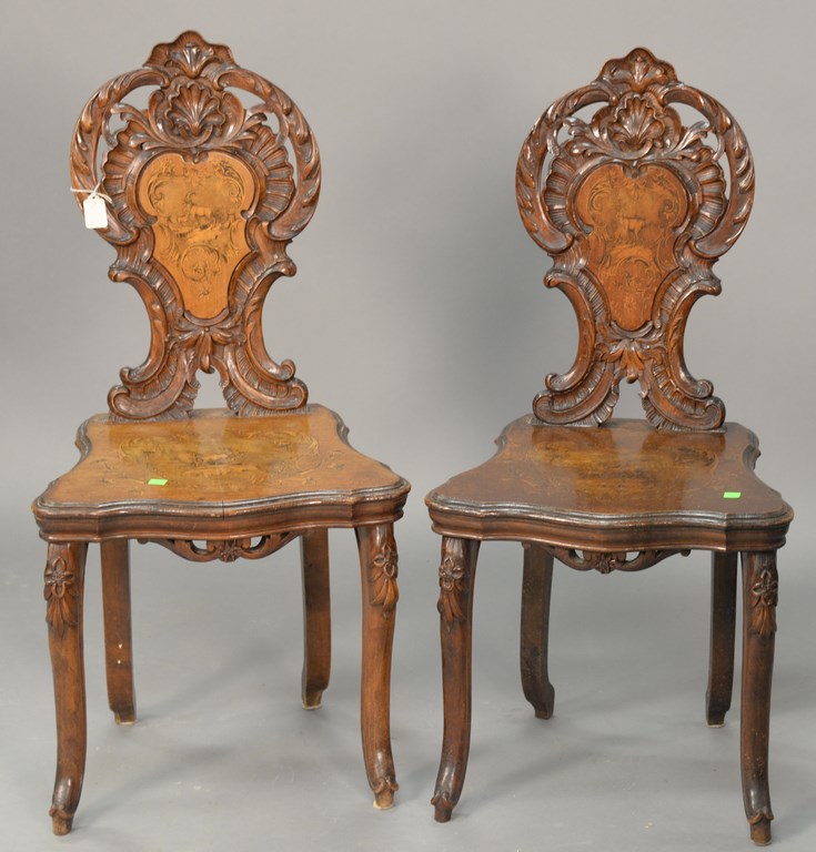 Pair of maple Queen Anne side chairs with pierce carved splats, cabriole legs ending in pad feet and slip seats, one in old grain finish, circa 1760. seat ht. 18in. back ht. 41 1/2in. From the collection of Thomas and Alice Kugelman
