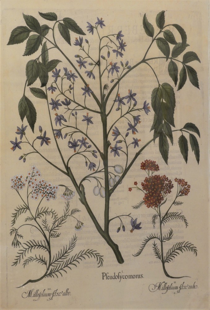 Two piece lot to include an After Basilius Besler (German, 1561-1629), “Pfeudofy Comorus” , oversized digital botanical print, sheet size 45 1/2″ x 30 1/2″, along with after Neuman & Dinglinger “Chronological chart of American history”, oversized framed digital print, Provenance: David and Cynthia Kim, 22 Stoney Wylde Lane, Greenwich, Connecticut. View home by visiting: https://www.zillow.com/homedetails/22-Stoney-Wylde-Ln-Greenwich-CT-06830/177238281_zpid/.