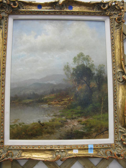 Lot 103: C. D. Morris, oil on canvas, lake and landscape