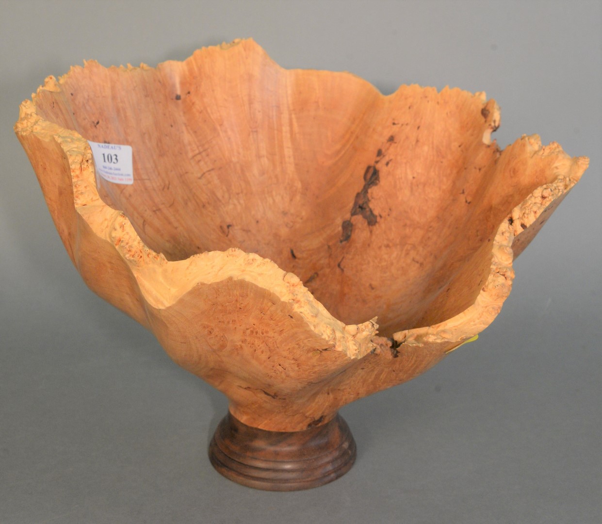 Lot 103: Mark Taylor American, 20th Century Freeform bowl on pedestal, turned maple burl wood, signed and inscribed on the underside of th…